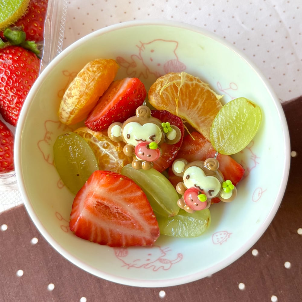 fruity lil monkey with an apple !! 🍎🍀🎀🐒